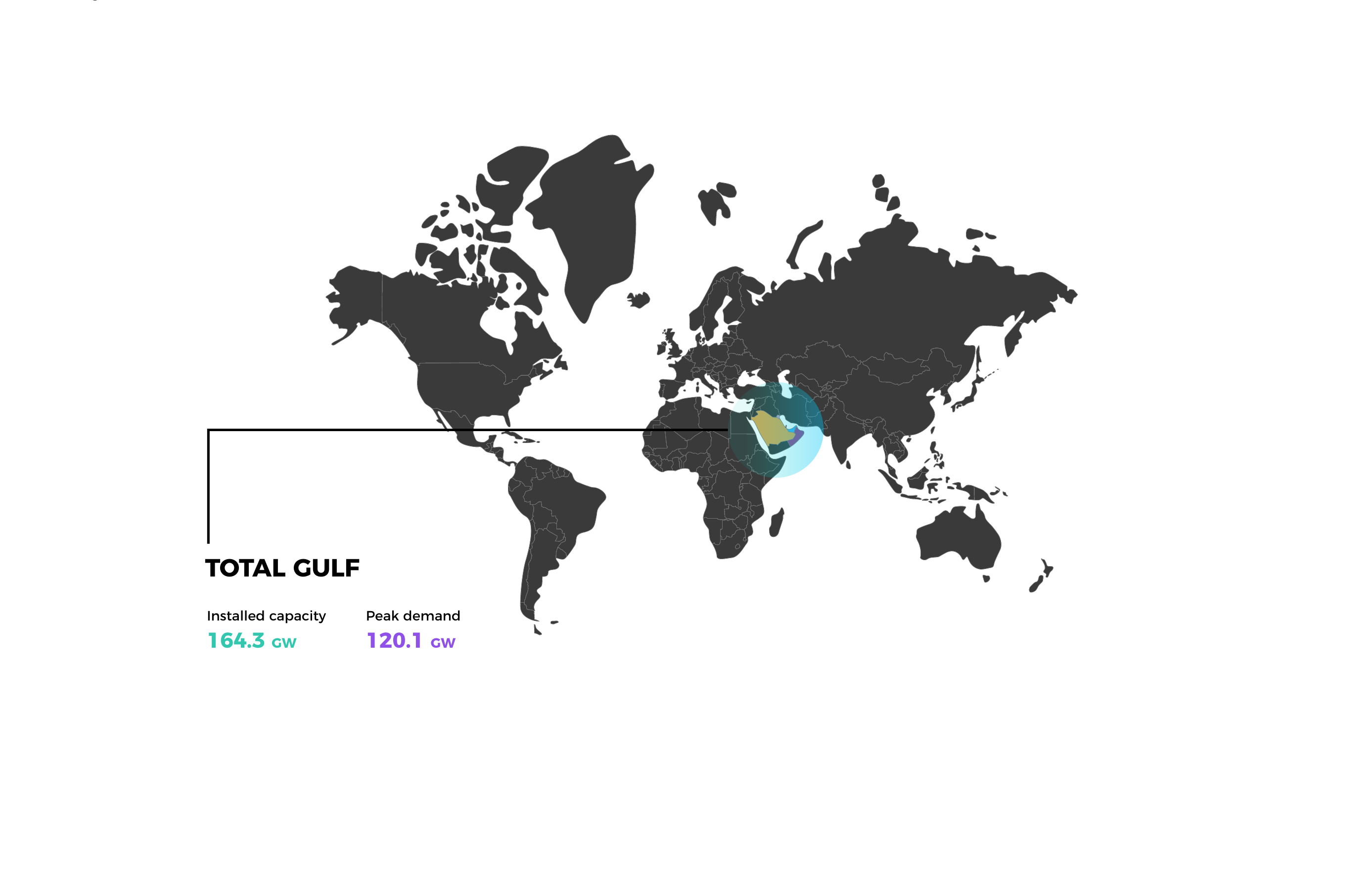 The Gulf’s current available power generation capacity is approximately 165 Gigawatts (GW), up from 154 GW in 2018, which accounts for half of the Middle East’s estimated total installed capacity. Peak electricity demand in the Gulf was in the vicinity of 120 GW in 2020 2.